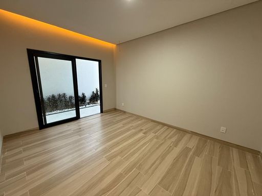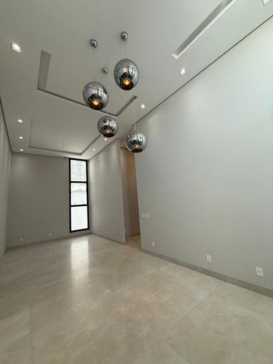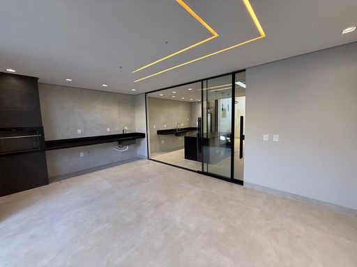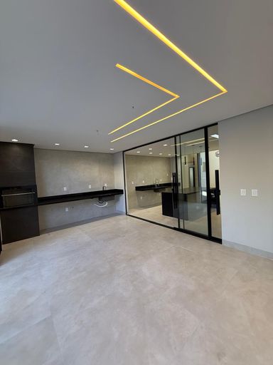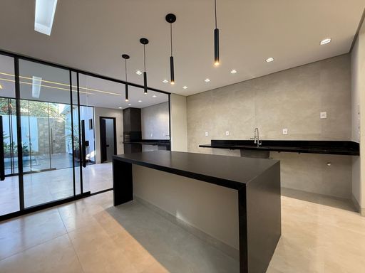 O imóvel conta com quatro suítes plenas, incluindo uma suíte master. A sala de estar e jantar possui pé-direito elevado, criando amplitude e iluminação natural. Hall de entrada, lavabo, cozinha com bancada em ilha e despensa completam a área social com funcionalidade e sofisticação.