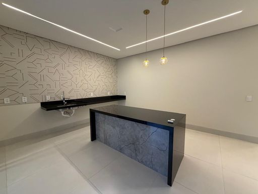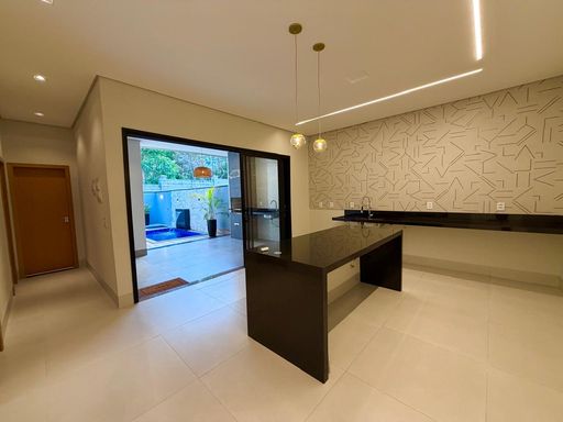 O imóvel conta com 3 quartos, todos suítes, garantindo conforto e privacidade. A sala possui pé-direito alto, proporcionando amplitude e excelente iluminação natural. A cozinha, com ilha central, é integrada à área gourmet, criando um espaço perfeito para receber.