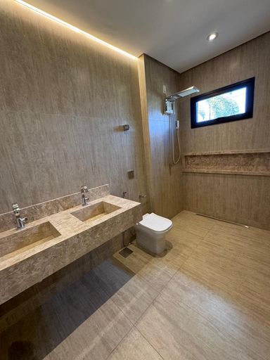 Residência de alto padrão no Caribe Residence e Resort, em terreno de 600m² e 368m² de construção. O térreo conta com ampla suíte master com closet, salas de estar, TV e jantar, além de cozinha integrada à área gourmet, adega climatizada, despensa e depósito. No piso superior, três suítes, incluindo outra master com varanda. Área de lazer completa com piscina com hidromassagem, churrasqueira e iluminação cênica. São 2 vagas cobertas e vagas descobertas. Facilidade de negociação.